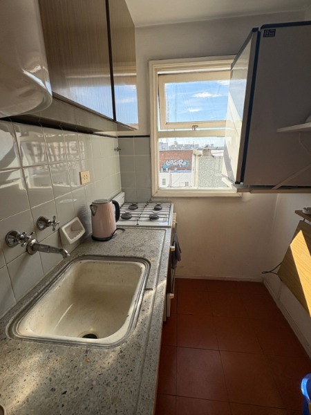 Amoblado, cocina equipada con heladera chica con congelador, pava eléctrica,licuadora.