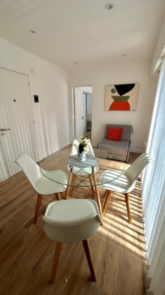 Amplio y luminoso, totalmente amoblado, con TV y tomas USB para carga de dispositivos.